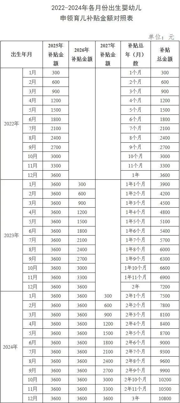2025年之前出生的孩子是否可以享受补贴?王海东介绍,根据《实施方案》,从2025年1月1日起,对符合法律法规规定生育的3周岁以下婴幼儿发放补贴,至其年满3周岁。同时,育儿补贴的发放对象也包括2025年1月1日之前出生的3周岁以下婴幼儿,这部分婴幼儿按照应补贴月数折算计发补贴,也是发放到年满3周岁。也就是说,2022年1月1日以后出生的符合条件的婴幼儿,都可以领取育儿补贴。
