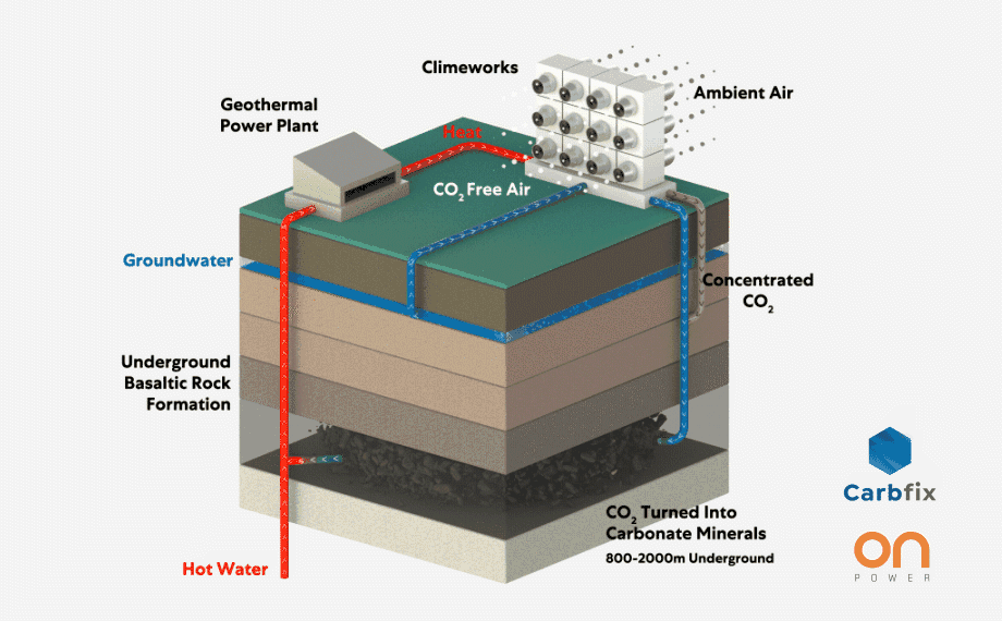 直接空气捕获二氧化碳并封存到地下示意图丨Climeworks