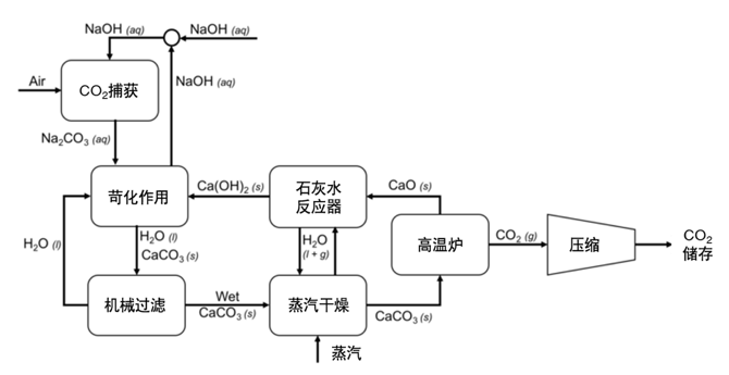工厂使用的碳捕获机理,其实就是我们初中化学学过的澄清石灰水吹气变浑浊啦~丨Wikipedia(作者翻译)