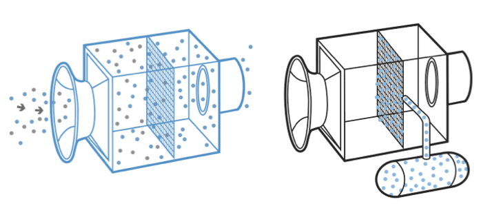 这个“净化器”的原理看起来简单粗暴。整套设备由8个空气收集容器组成,每个容器都装有几十个圆柱形风扇,借助这些风扇的强大吸力,空气便源源不断地被吸入,二氧化碳则被吸附到高选择性过滤材料的表面。等“吸饱”之后,风扇将会关闭,同时收集器开始加热到80至100℃之间,高纯、高浓的二氧化碳便被释放并收集起来了[1]。