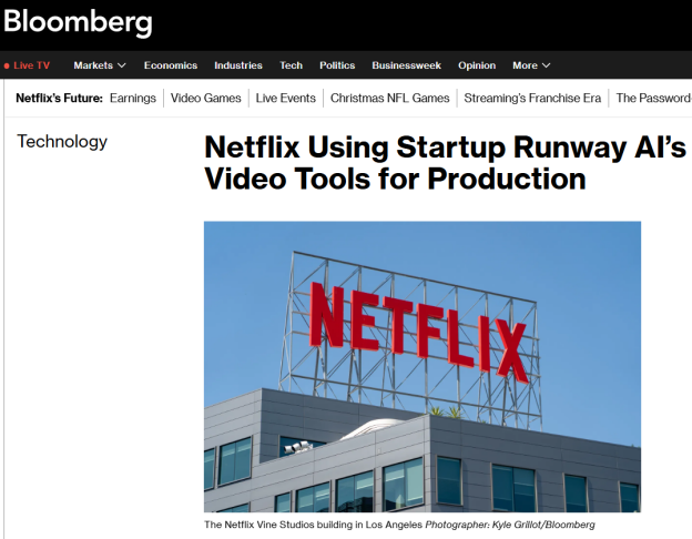 Netflix目前正尝试在内容制作中使用Runway的工具