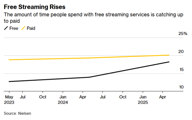 人们在免费流媒体上花费的时间正在赶上付费流媒体