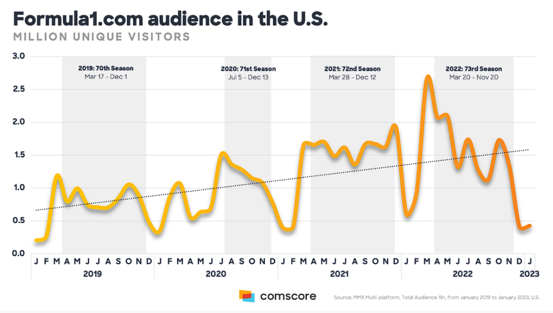 作为自由媒体旗下的DTC产品,F1 TV比传统转播渠道提供更多维和硬核的数据且无广告,已经在美国积累了一定体量的忠实用户。