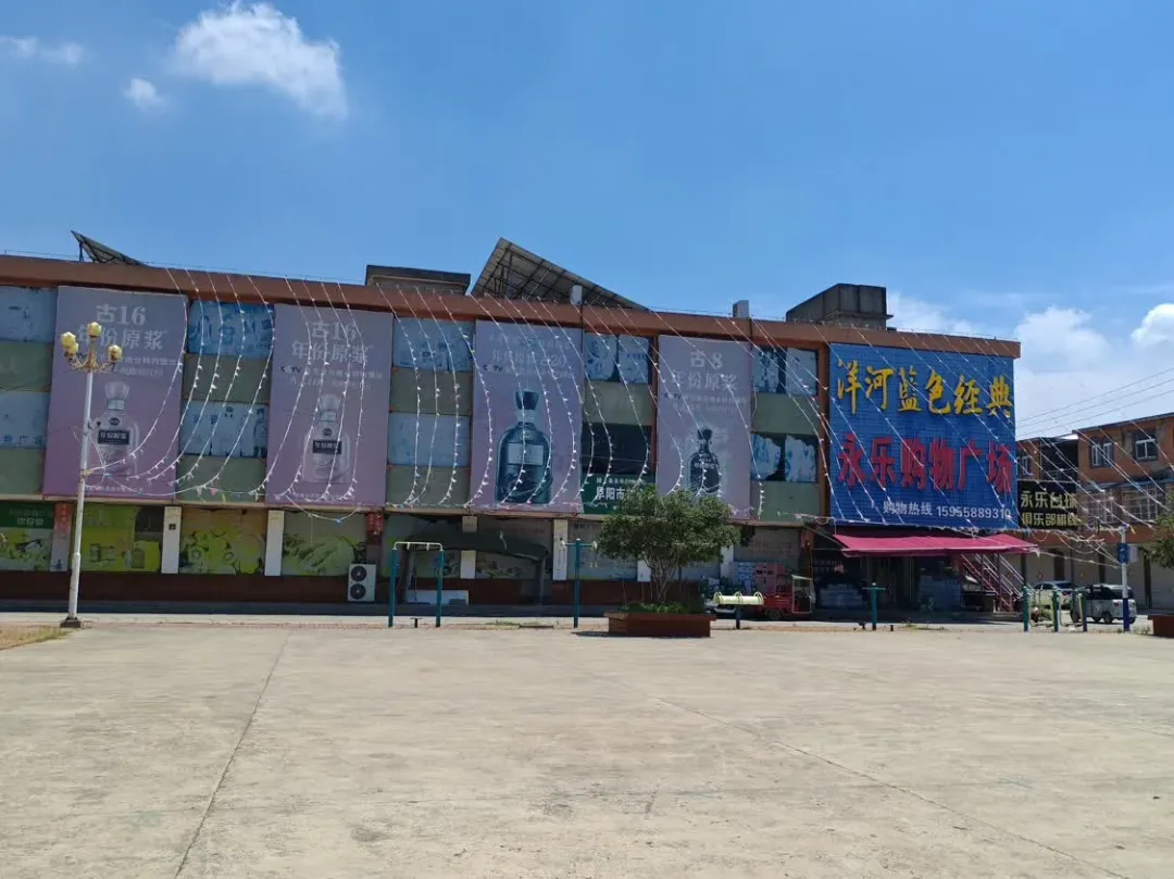 位于花毛村两三公里外的小店村,刘应保投建的永乐购物广场格外醒目,与周边低矮民房形成鲜明反差,其规模已不亚于县城中型超市。商城前方开辟出一片篮球场大小的广场,广场一侧矗立着他经营的永乐商务会馆。