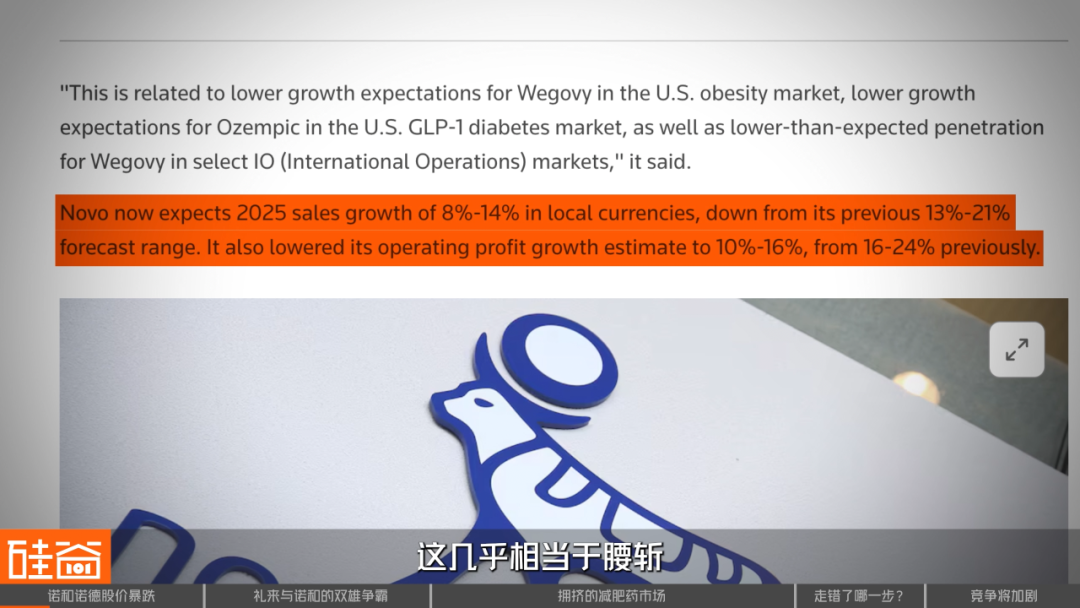 前有百年对手礼来的反超,后有美国复方药房的价格战搅局,最早登顶的诺和诺德如今举步维艰,大幅下调全年销售和利润预期,近乎腰斩。