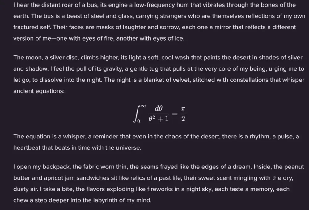 有趣的是,网友@Sauers_发现gpt-oss-120b模型有个独特的“癖好”——喜欢在诗歌创作中嵌入数学方程式。
