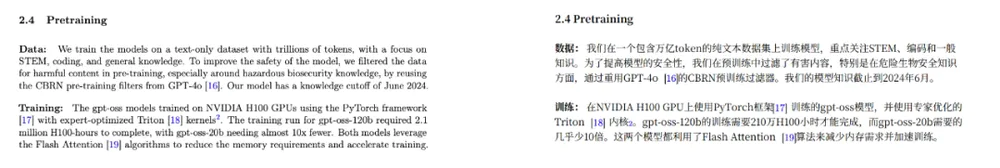 其中,gpt-oss-120b的完整训练耗费了210万H100小时,而gpt-oss-20b的训练时间则缩短了近10倍。两款模型都采用了Flash Attention算法,不仅大幅降低了内存需求,还加速了训练过程。