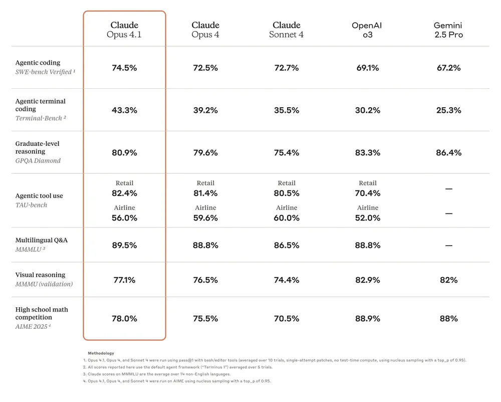 Claude Opus 4.1是对前代Claude Opus 4的全面升级,重点强化了Agent任务执行、编码和推理能力。