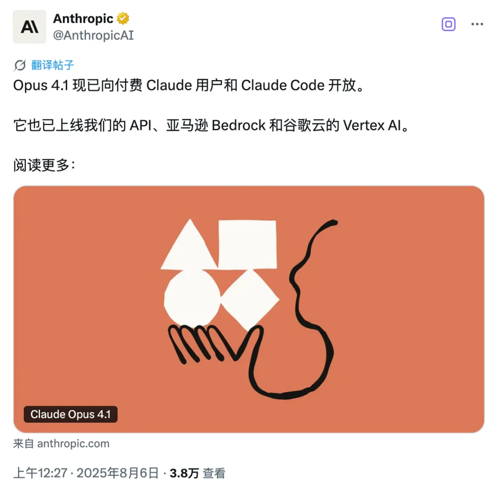 目前,这款新模型已向所有付费Claude用户和Claude Code用户开放,同时也已在Anthropic API、亚马逊Bedrock以及Vertex AI平台上线。
