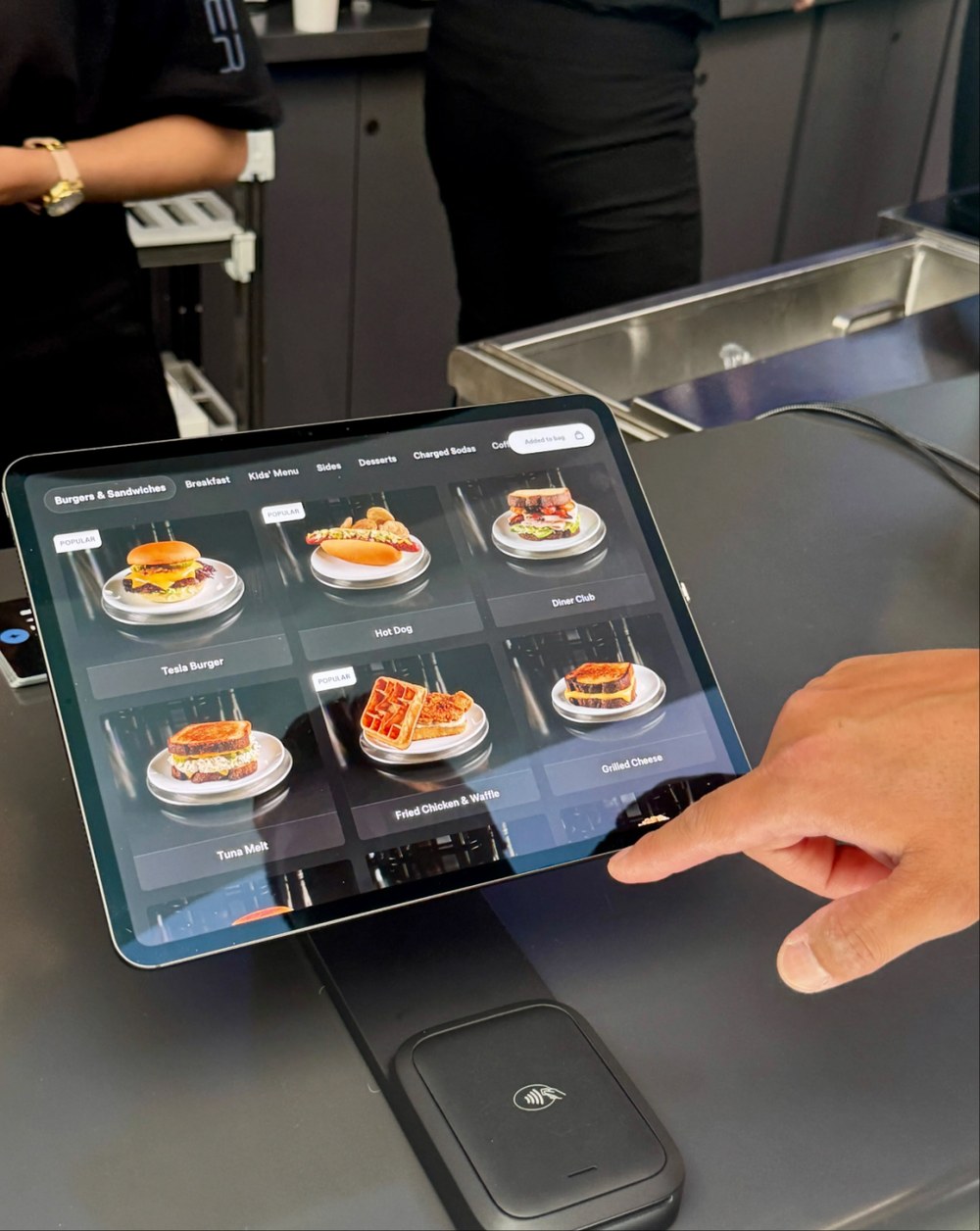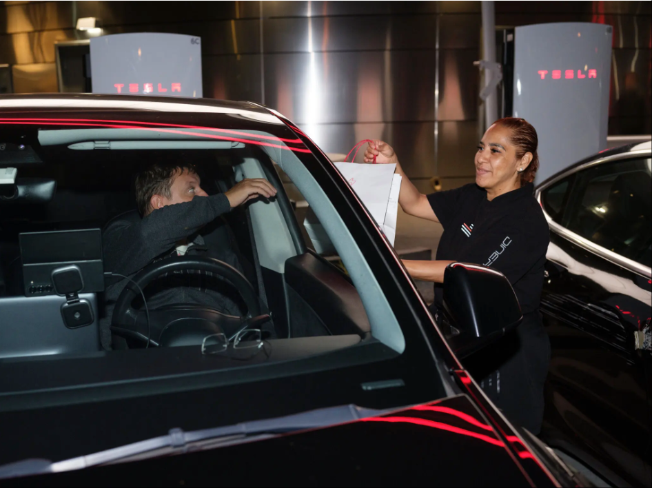 特斯拉司机可以通过应用程序订餐,通常无需下车即可用餐。