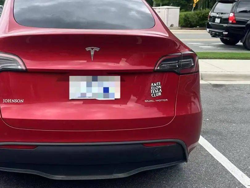 昨天,我在跑边看到一辆红色特斯拉,车后贴着一小张车贴: