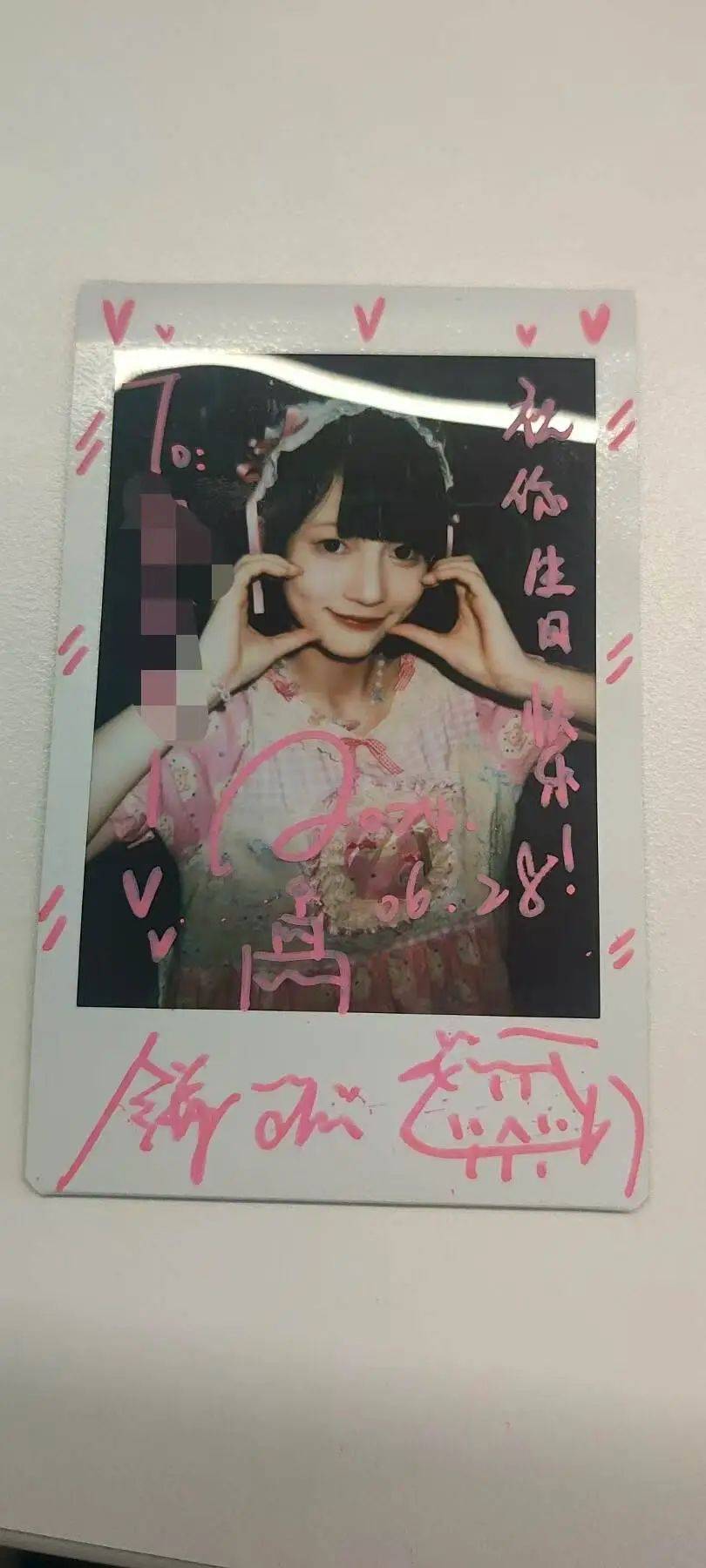 我回“没吃”。她就在我们合影的拍立得上画了个蛋糕,说:“喏,这样就算你吃过了。”那一刻我真的很感动。其实我生日当天还在加班,也没什么人祝我生日快乐。这个举动让我意识到,原来哪怕就只有自己过生日,也可以有点仪式感。在特典会上,虽然我们是第一次见面,但她表现出的这份关心,给了我很大的情绪价值。