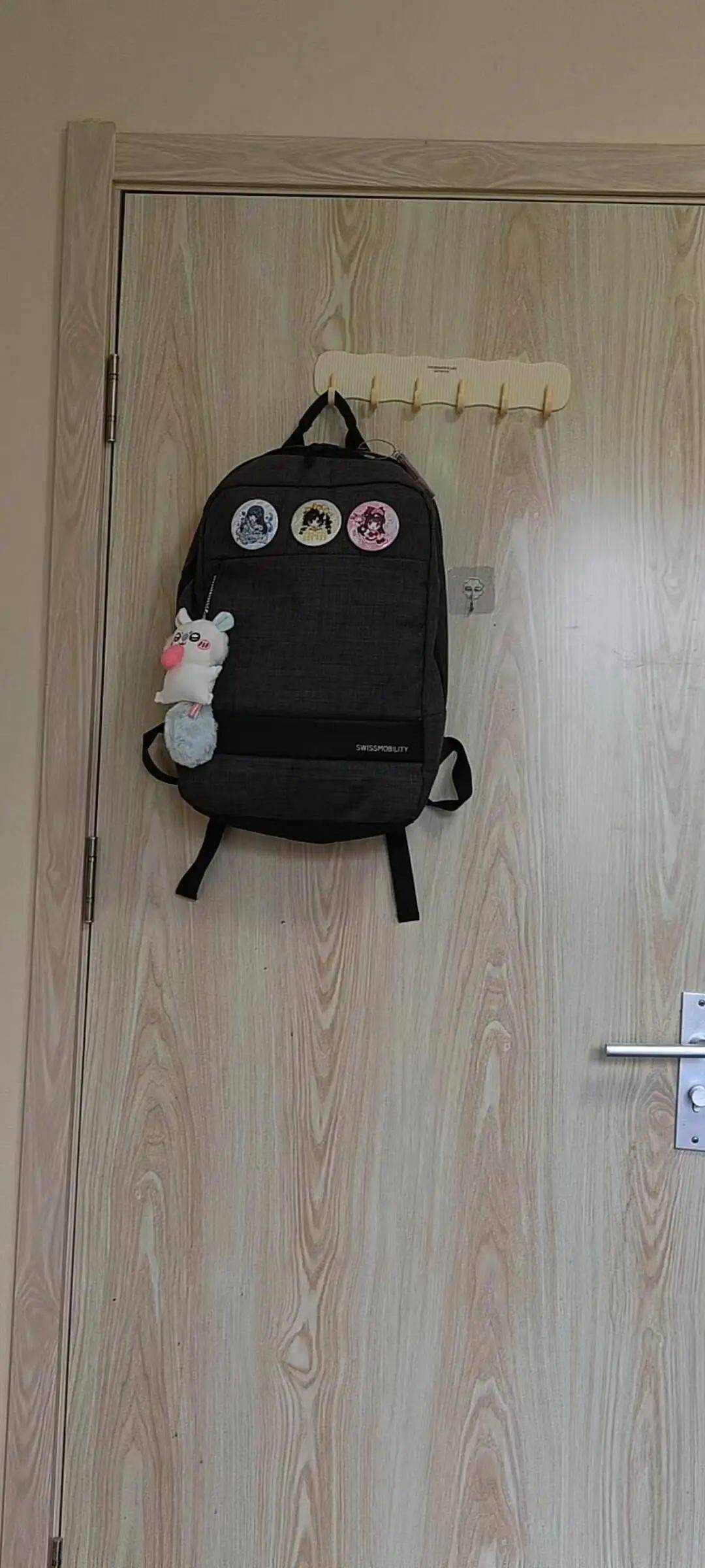 小M的背包,上面挂着追地偶的周边,及小偶像送的生日礼物公仔