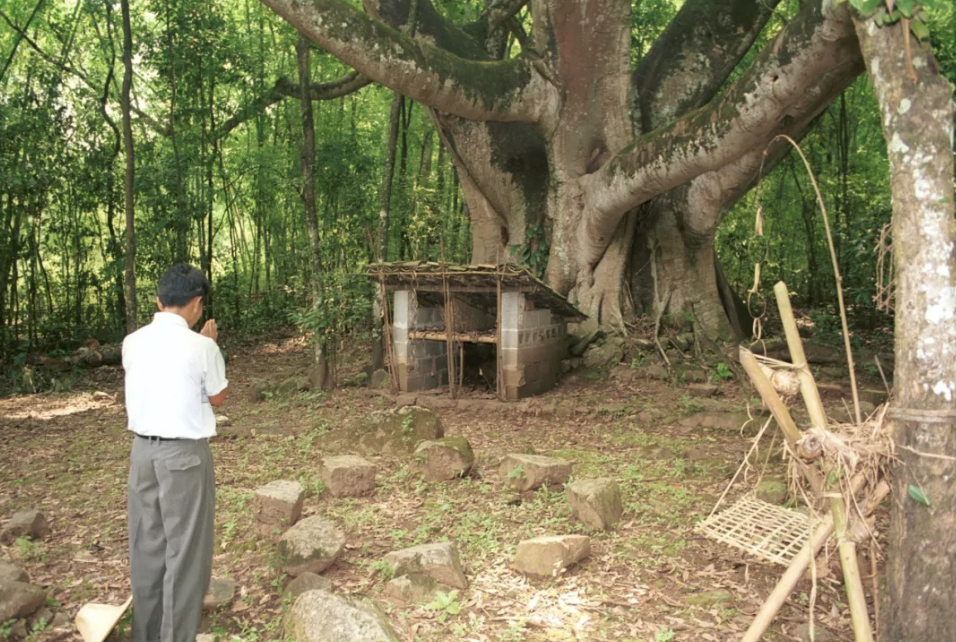 2001年,云南盈江蛮胆老寨。寨子外面,总有一些隐秘之地,承载着民间的信仰。(图/邓启耀 摄)