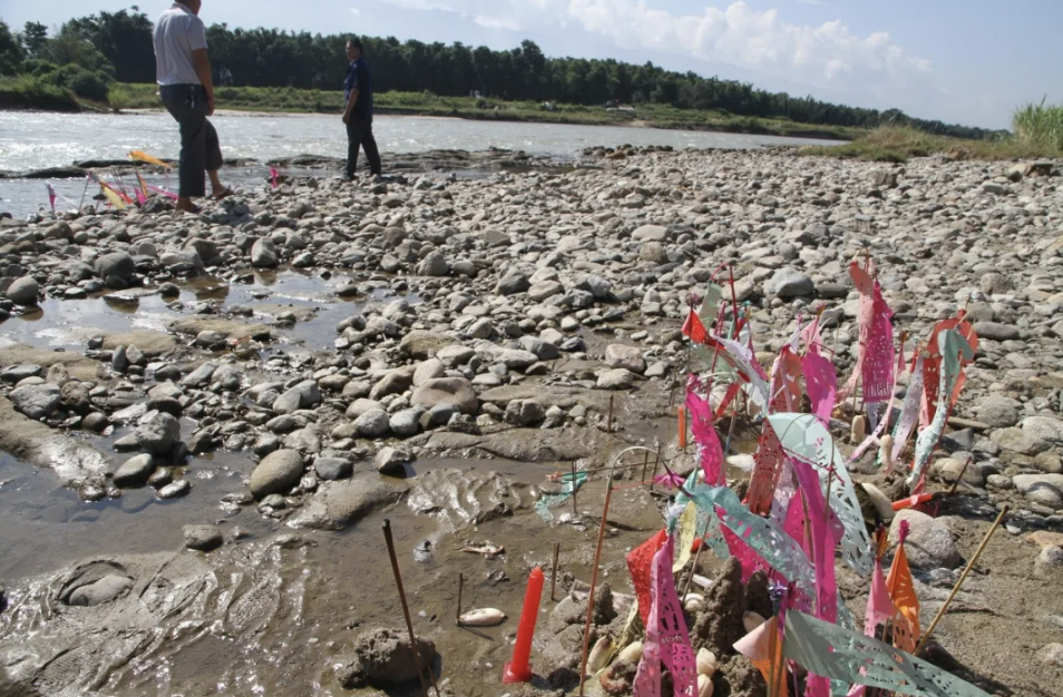 2018年,云南盈江蛮胆老寨。江边的简易祭坛,流水将带走一切邪秽。(图/邓启耀 摄)