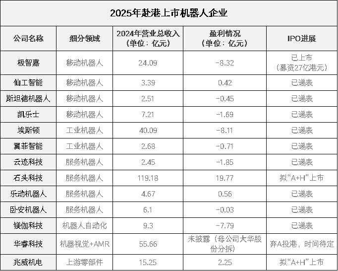在极智嘉成功募资27亿港元创下机器人企业H股IPO纪录的两周内,又有9家机器人公司递交了上市申请。