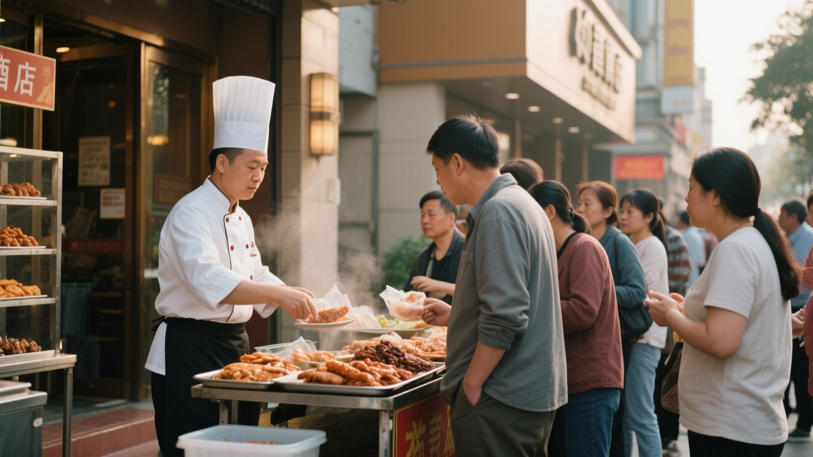 这股浪潮的涟漪,很快就从金字塔尖扩散开来。它不仅限于五星级酒店,那些人均消费一两百元的中高端餐厅也迅速跟进。他们在晚餐高峰前,在门口支个摊子,卖点小吃、盒饭,每天多赚几千块钱现金流,这笔钱或许不足以扭转乾坤,但在眼下却是至关重要的“活命钱”。