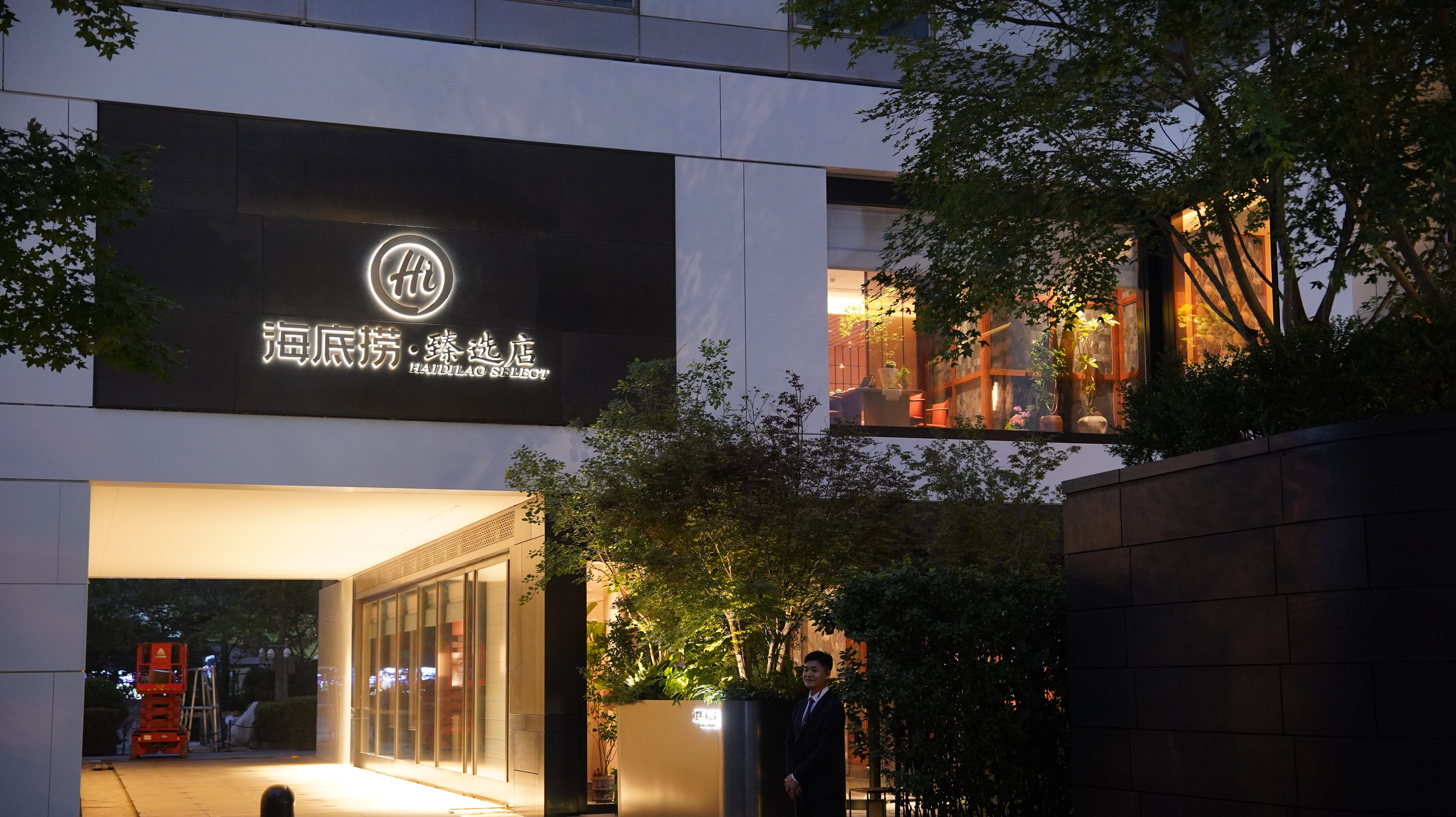 北京光华路汉威大厦左侧,几株绿树掩映下,“海底捞·臻选店”的黑底金字招牌低调显露。店内的景象也绝非市场和消费者熟悉的那片“红海”:澳洲龙虾在海鲜池游弋,西班牙5J火腿静待品味,侍酒师与茶艺师隐于角落…
