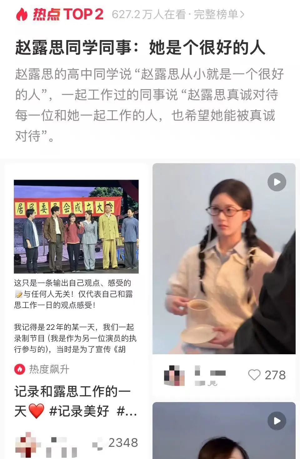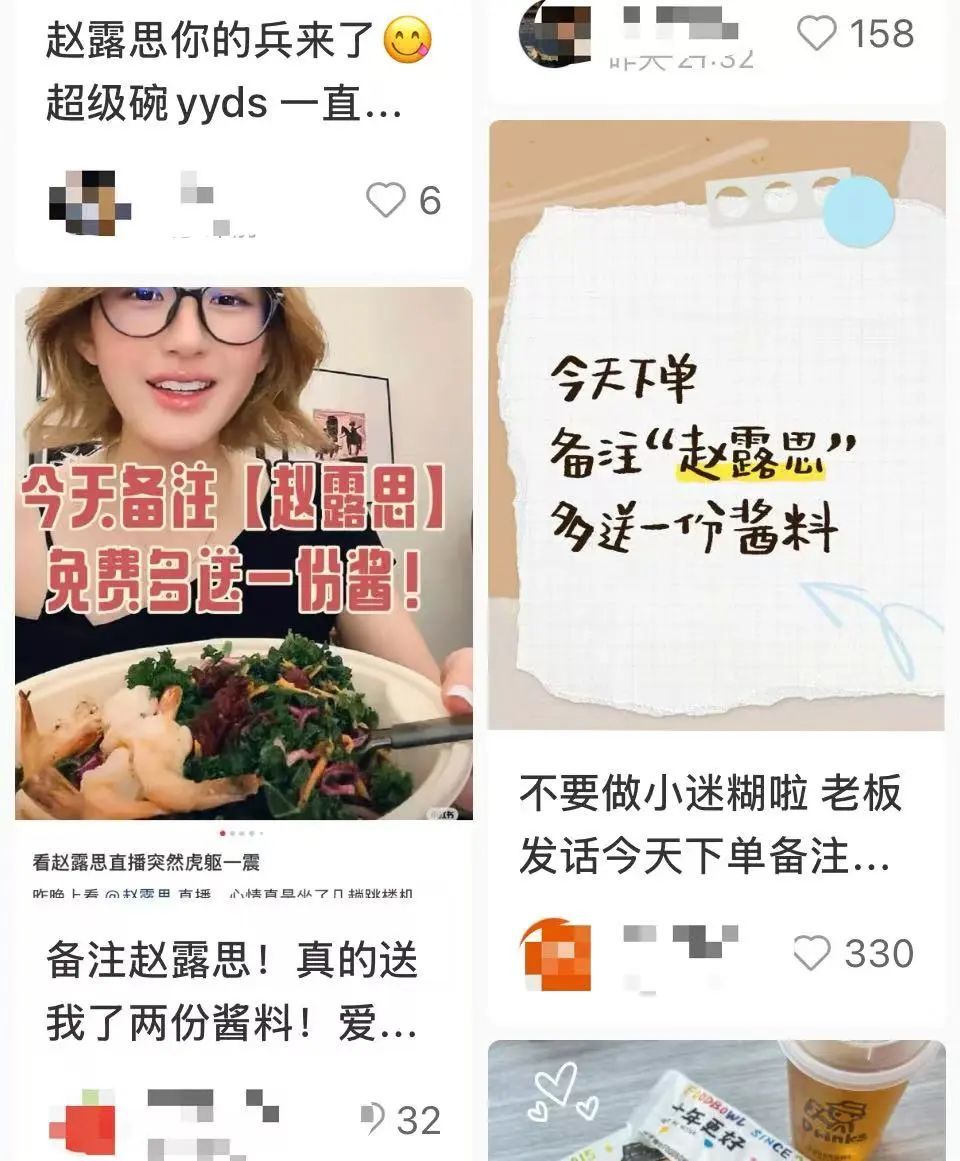 而这一次,赵露思在8月3号爆出对银河酷娱的九连问之后,更是得到了小红书网友的大力支持,直播一开立刻涌入大量观众,浏览量超过210.8亿。相比微博那总是略带阴阳的热搜词,这一轮小红书官方给赵露思的词条也趋于正向:#赵露思同学同事:她是个很好的人#等。甚至有人浑水摸鱼地带起了货,声称点赵露思同款沙拉,多送一份酱。