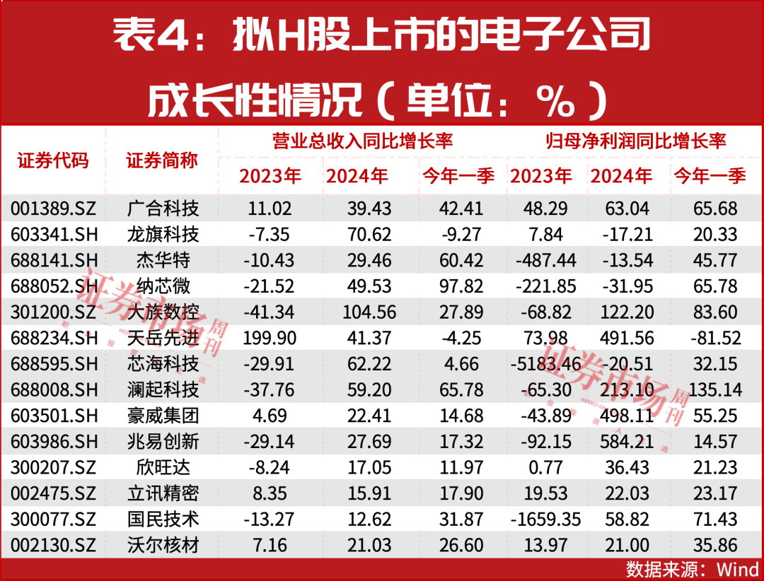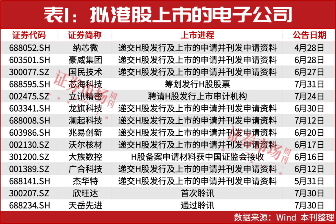 据不完全统计,包括天岳先进和欣旺达在内,目前有14家A股电子龙头正在等待H股上市(见表1)。就这些公司申报情况看,大多数处在递交H股发行及上市的申请并刊发申请资料阶段。