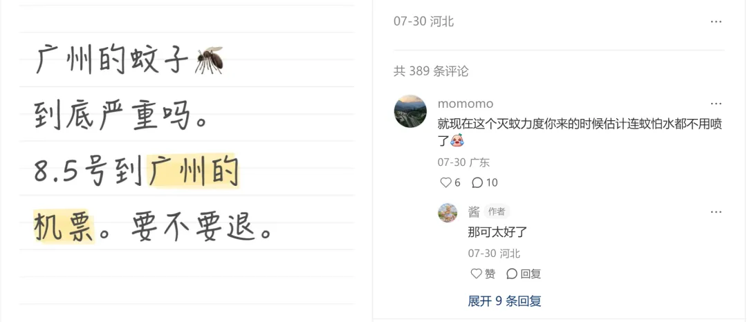 不少网友发起一场关于“是否被华南蚊子劝退”的大讨论。