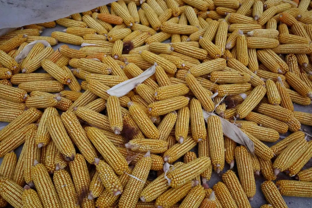 村内,农民在晾去年收起的玉米,图源:时代周报记者傅一波
