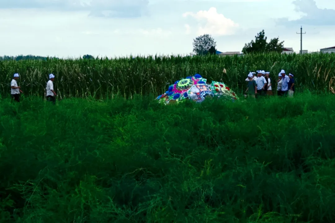 徐守军一边盼雨一边浇水的那晚,一场葬礼在村边的田间举行。按当地传统,老人去世就得埋在自家的地里,土地养活了那位逝者,如今又埋葬了他。