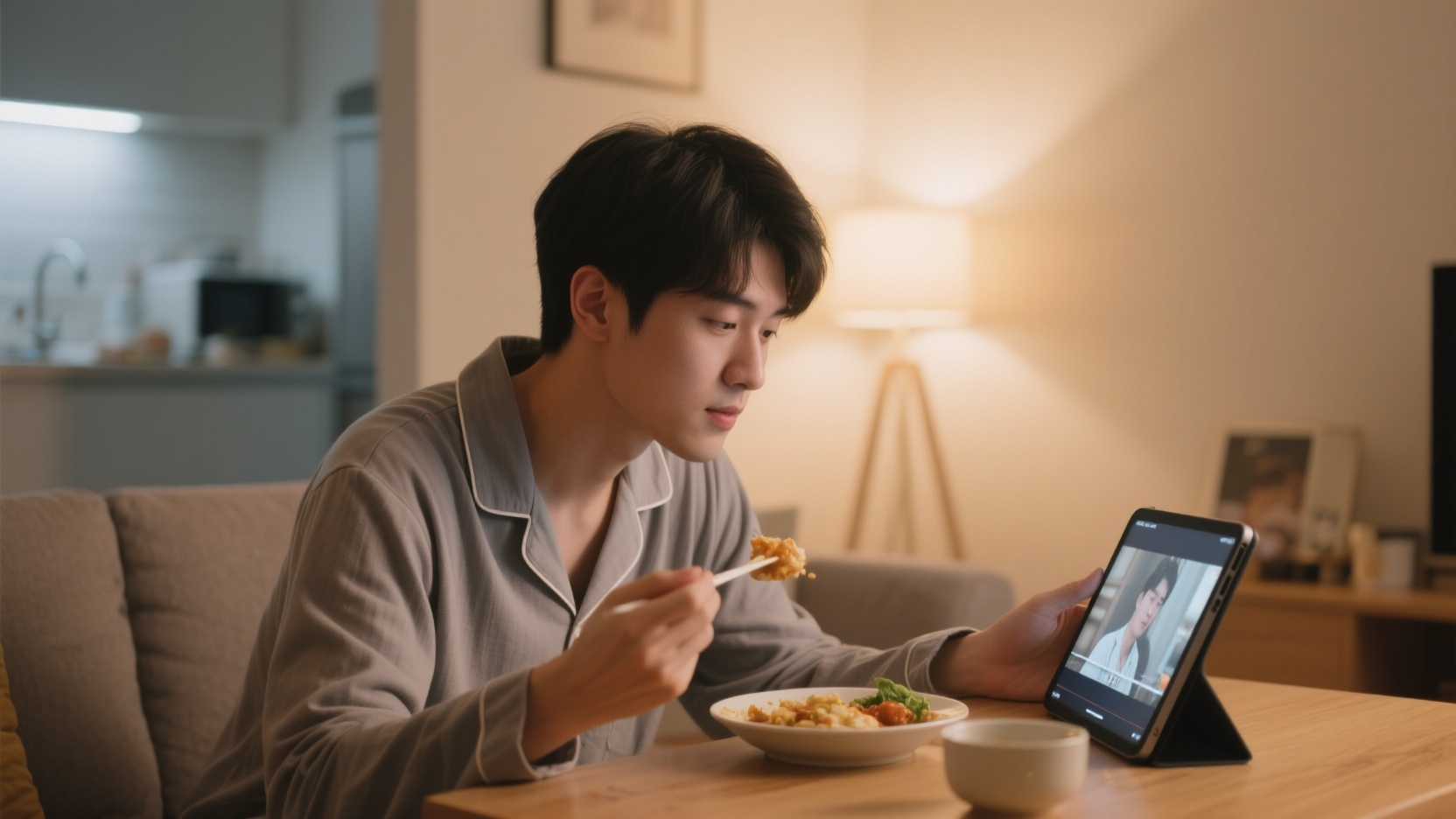 @芝士:一个人也想好好吃饭,所以才会不自觉地刷手机。小时候,一家人一起吃饭很香,长大后到大城市打工,吃饭就比较凑合。但架不住对吃饭还是有点追求,总不能就坐在那里一个人默默地把饭吃完吧?那就真成行尸走肉了。有一次,刚打开外卖,手机就没电了,租的屋子只有床边有插座,我就默默地坐在床边给手机充电到15%,保证我能就着视频吃完这一顿饭。充电的过程中心里特别煎熬,开始同步找能下饭的视频,吃上饭的时候,半个小时过去了,饭也有点凉了。