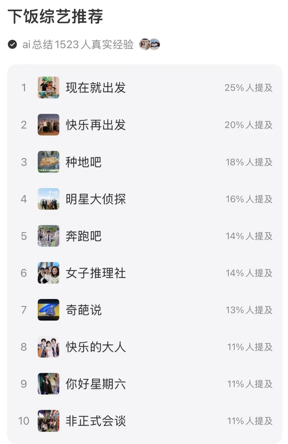 ◉小红书上的“下饭综艺”推荐。图源:小红书截图