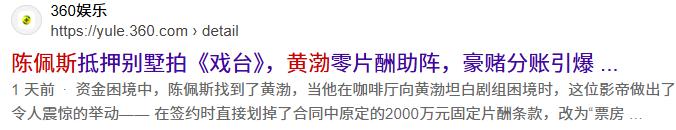 陈佩斯抵押别墅、黄渤零片酬助阵的讯息进入视野。