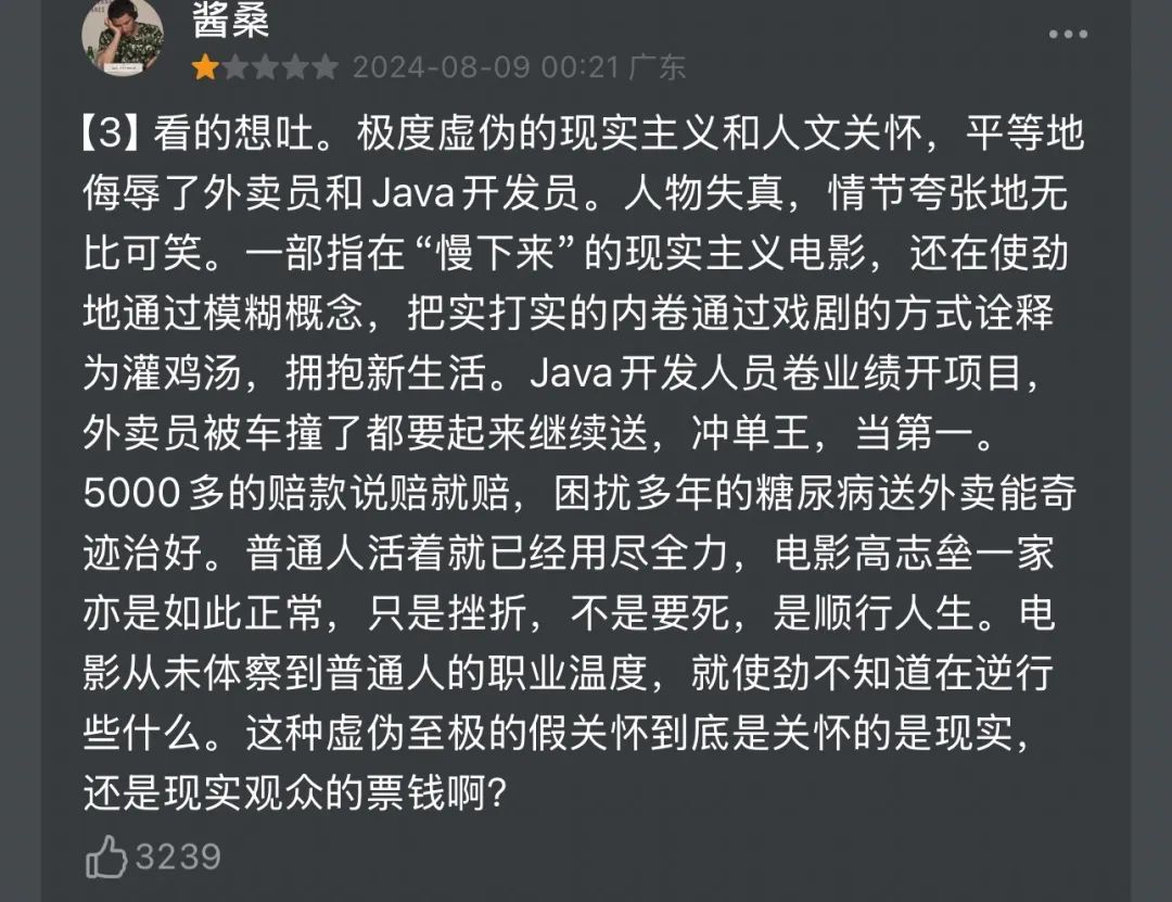 相对应地,这些“牛马电影”的其中一类负反馈便围绕着此进行: