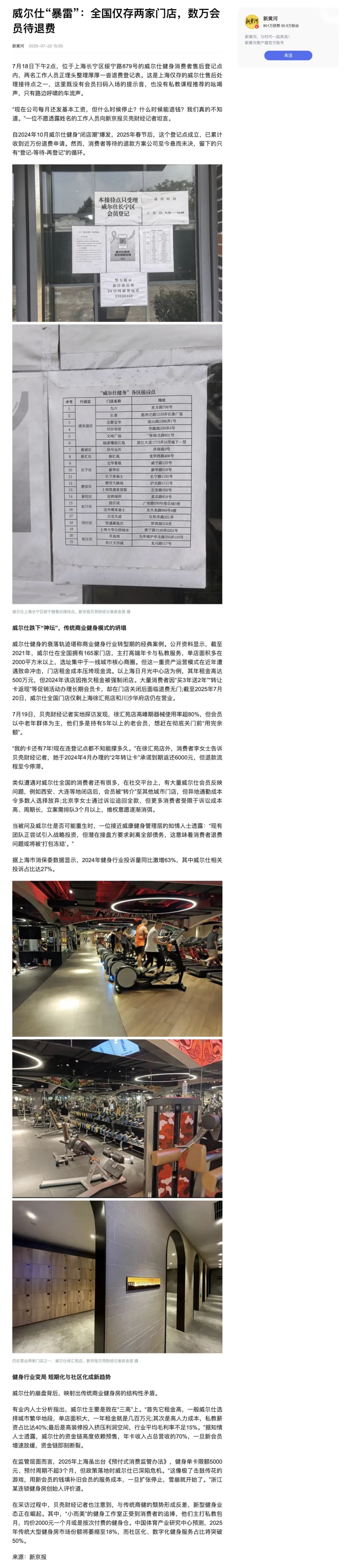 后台有人发我一图,说威尔仕这么多年的健身房老牌子,也顶不住了。