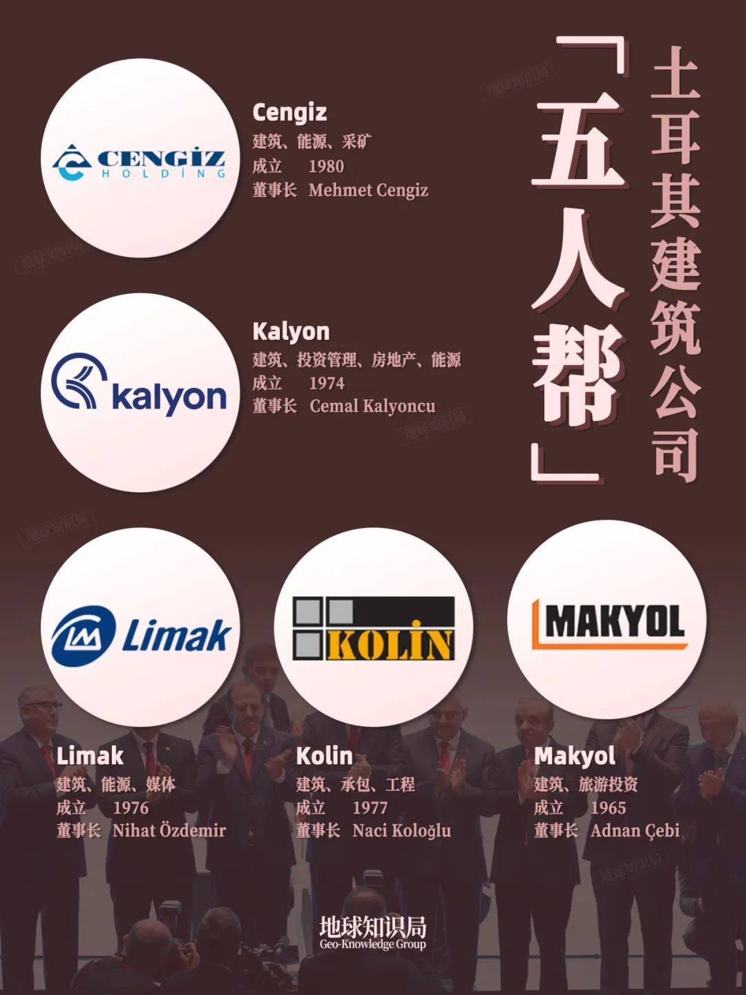 土耳其有五家建筑公司(Cengiz, Kalyon, Limak, Kolinand, Makyol)被人戏称为“五人帮”。它们被认为与埃尔多安政府存在深度的利益勾兑。