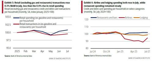 基于这些数据,美银预测,周五即将公布的7月零售销售(除汽车外)数据将环比增长0.3%,而更能反映核心消费需求的“控制组”销售(除汽车、汽油、建筑材料和餐饮服务)数据将录得0.6%的增长,高于市场预期。