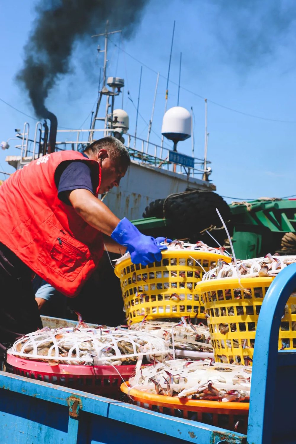 开海了!一筐筐肥美的梭子蟹。 摄影/姜姜