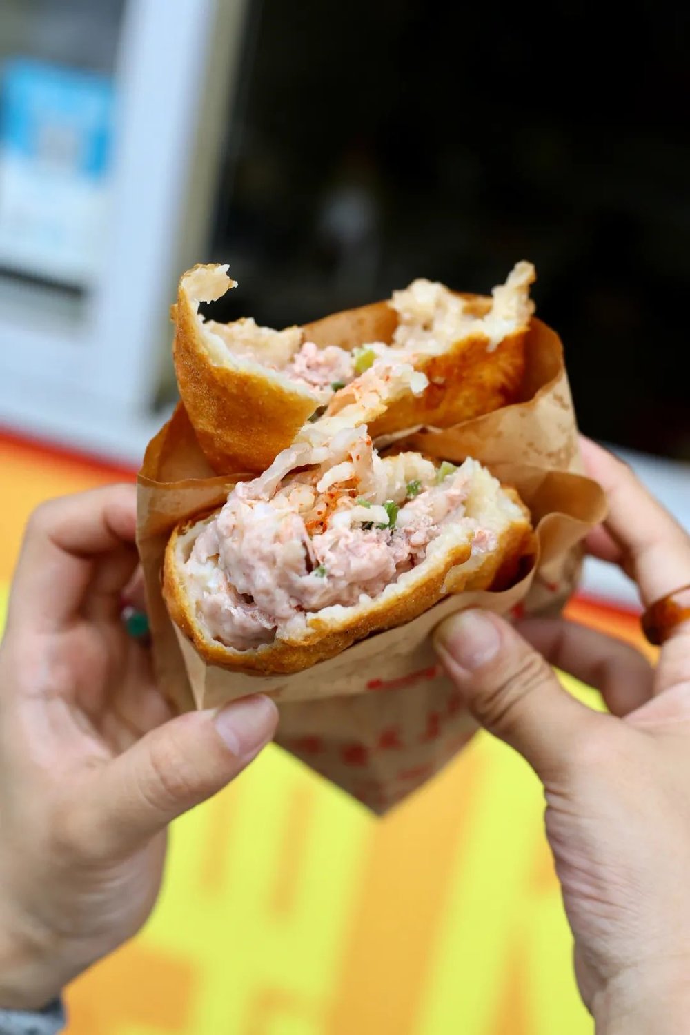上面塞满鲜虾的炸泡虾。摄影/肥仔吃台州