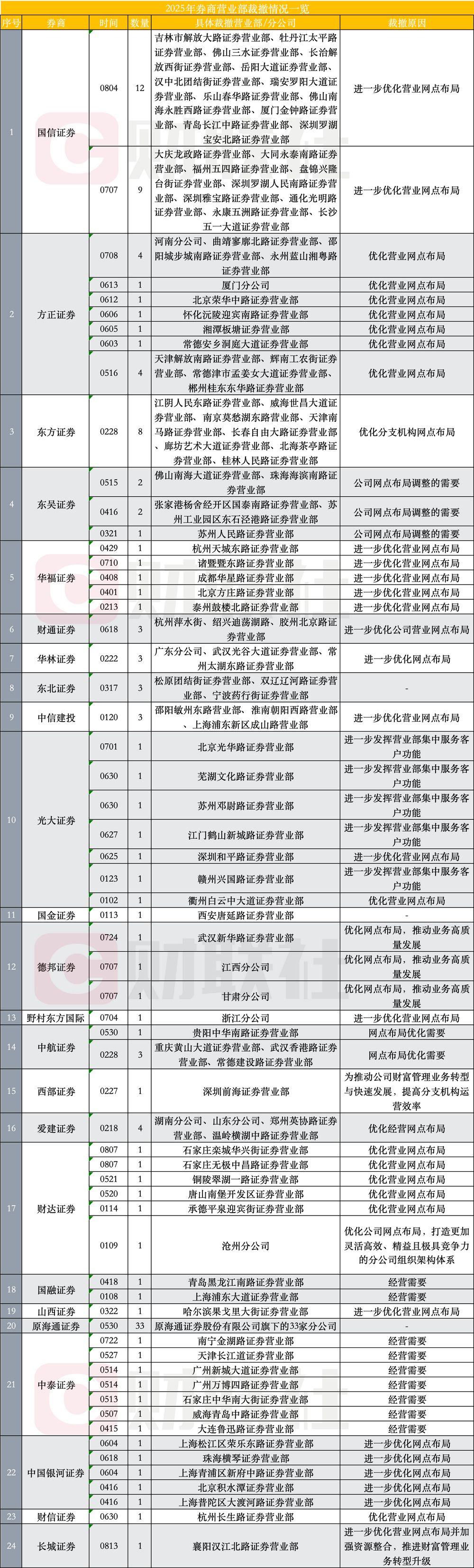 2025年以来,券商营业部、分公司关停公告接踵而至。