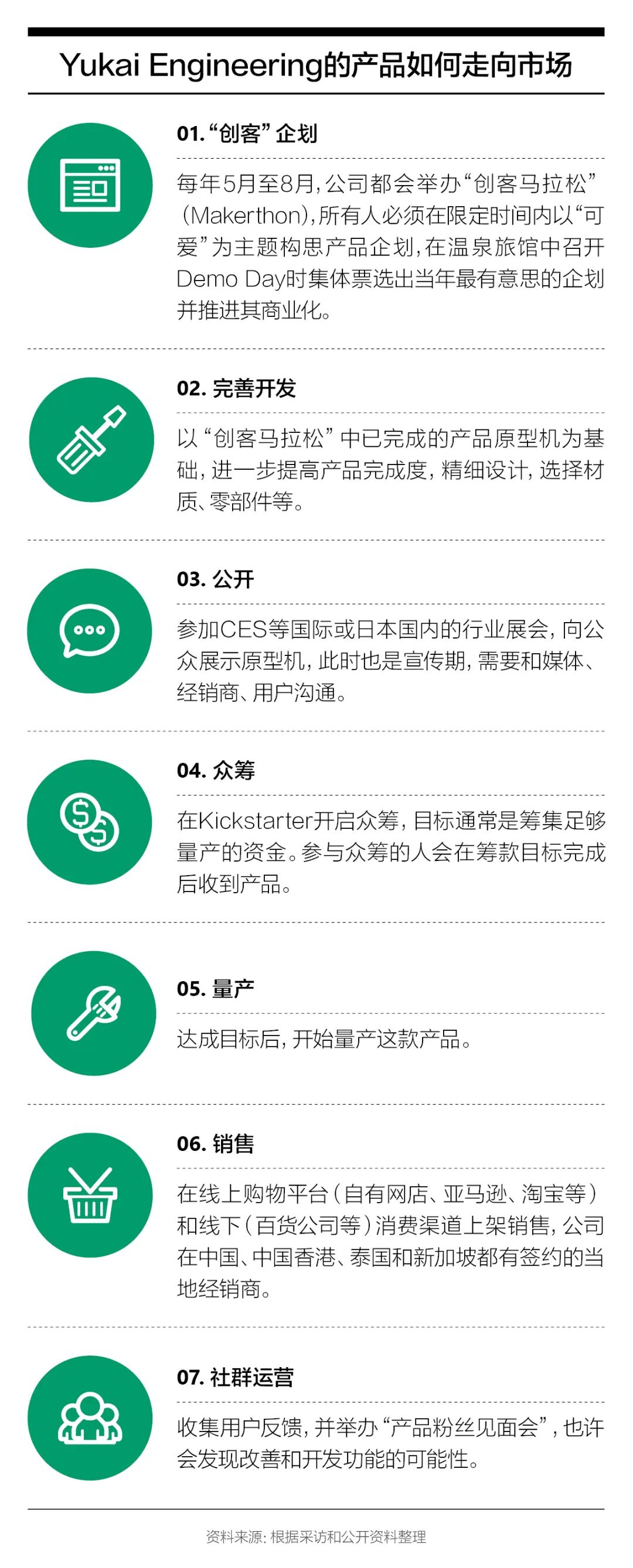 这种打动人心的设计是 YUKAI 工学擅长的。如果机器人是面向消费者的,意味着要充分考虑用户体验。青木俊介认为现行公司体制起了很大作用。每年 5 月到 8 月,公司内部都会举行全员参与的“创客马拉松”,鼓励大家提出产品企划点子,并在温泉旅行期间选一天开会,集体票选出当年最受欢迎的产品企划。所有商品化的产品几乎都是经过这种流程选定的。
