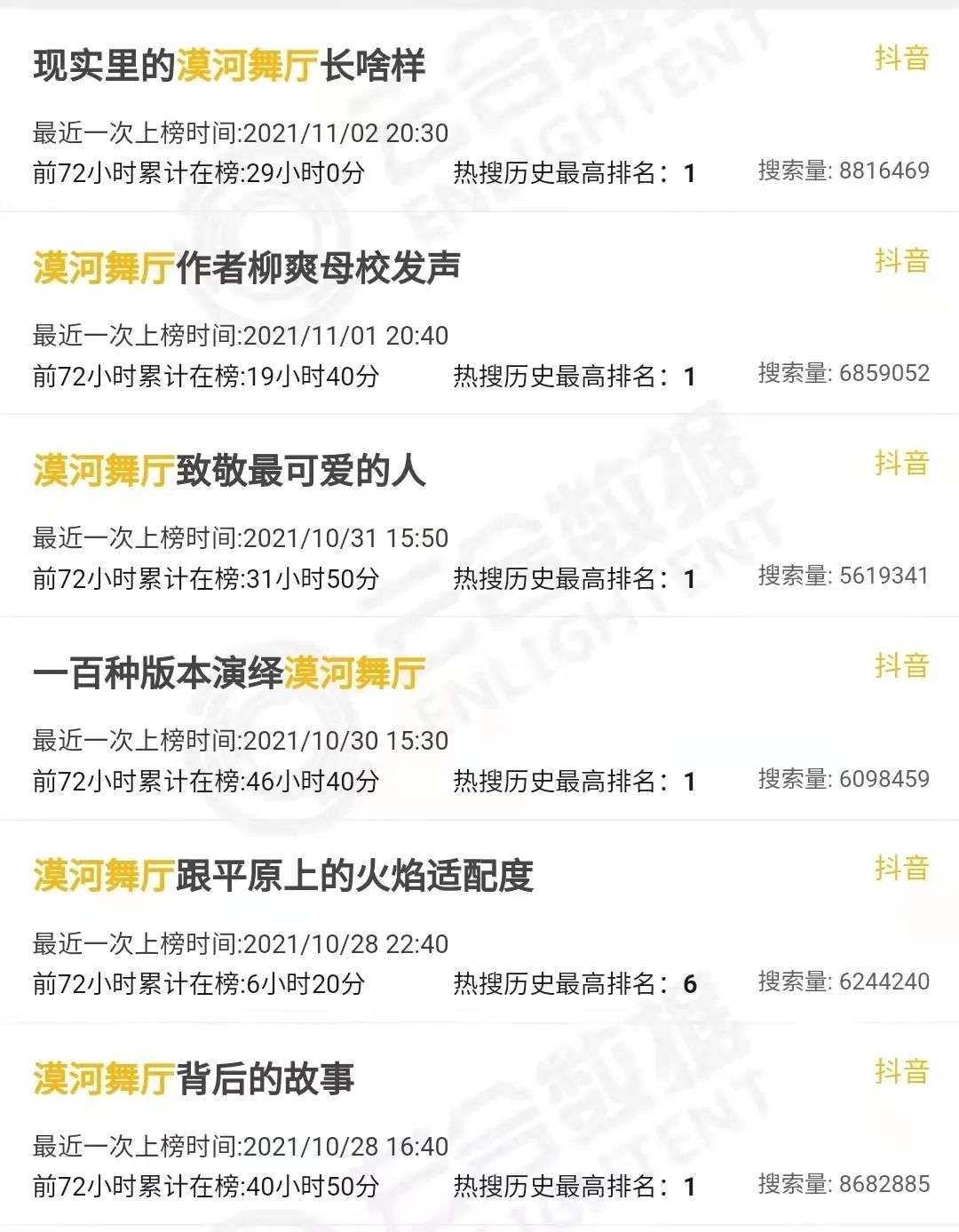 由“《白日焰火》廖凡独舞BGM”到“漠河舞厅原曲”,再到“现实里的漠河舞厅长啥样”,从抖音平台热榜词条的变化中,我们也可以看出大众对这首歌关注点的变化。