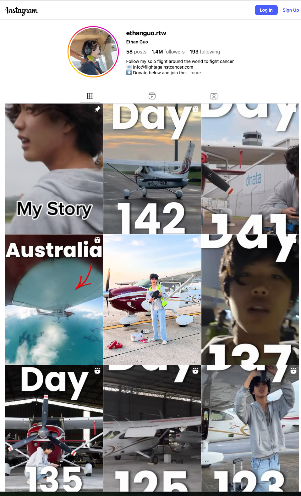 伊桑·郭生于2005 年末,17 岁时便获得了飞行执照,有仪表飞行能力,已飞过美国连州,三次跨越大西洋。