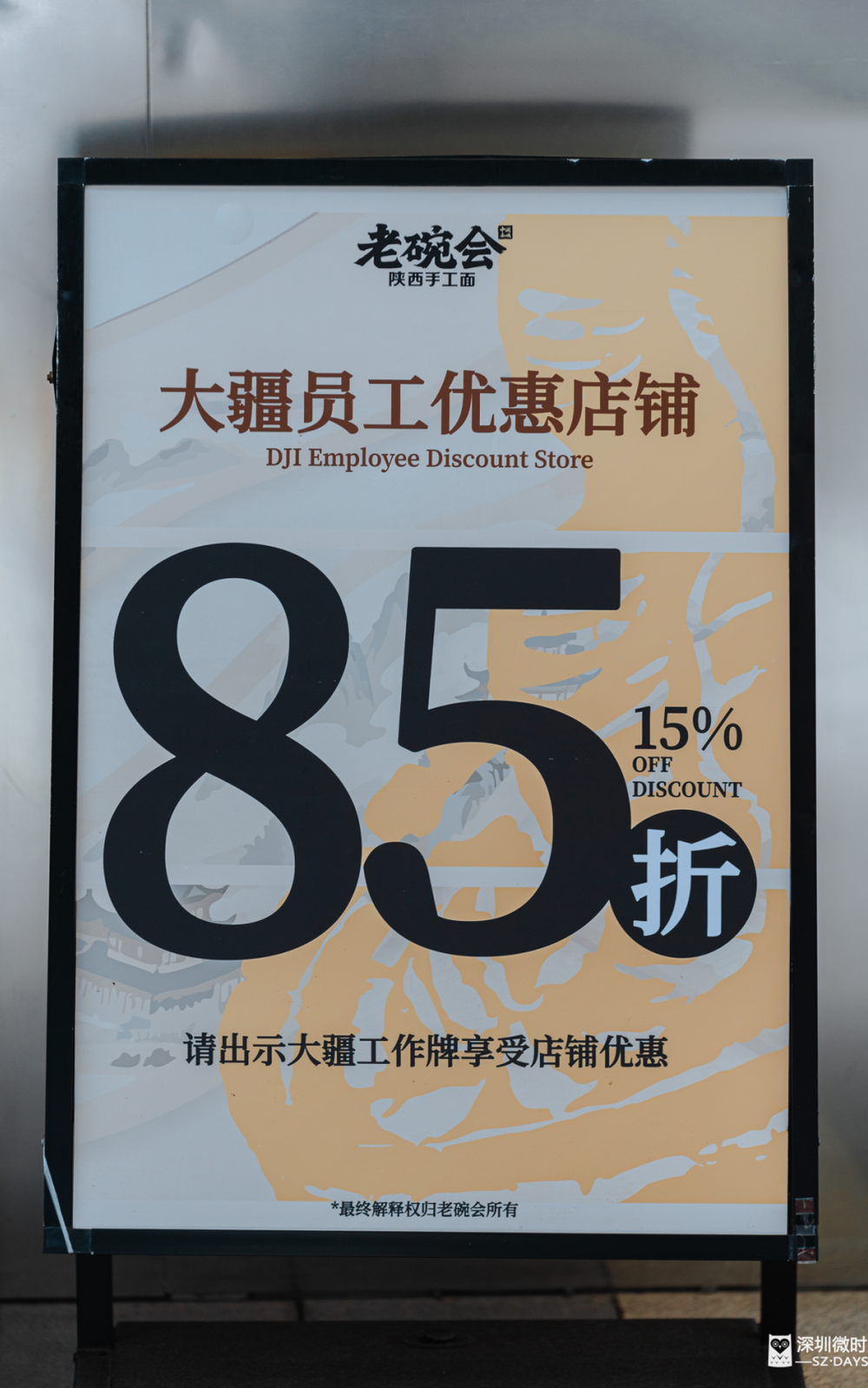 当然,发现商机的并不只有传音食堂,创智云城有几家餐饮店还打出专属大疆员工优惠的招牌。