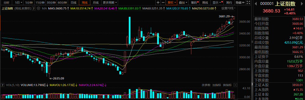 2025年8月13日,上证指数成功突破了去年2024年10月8日创下的高点。