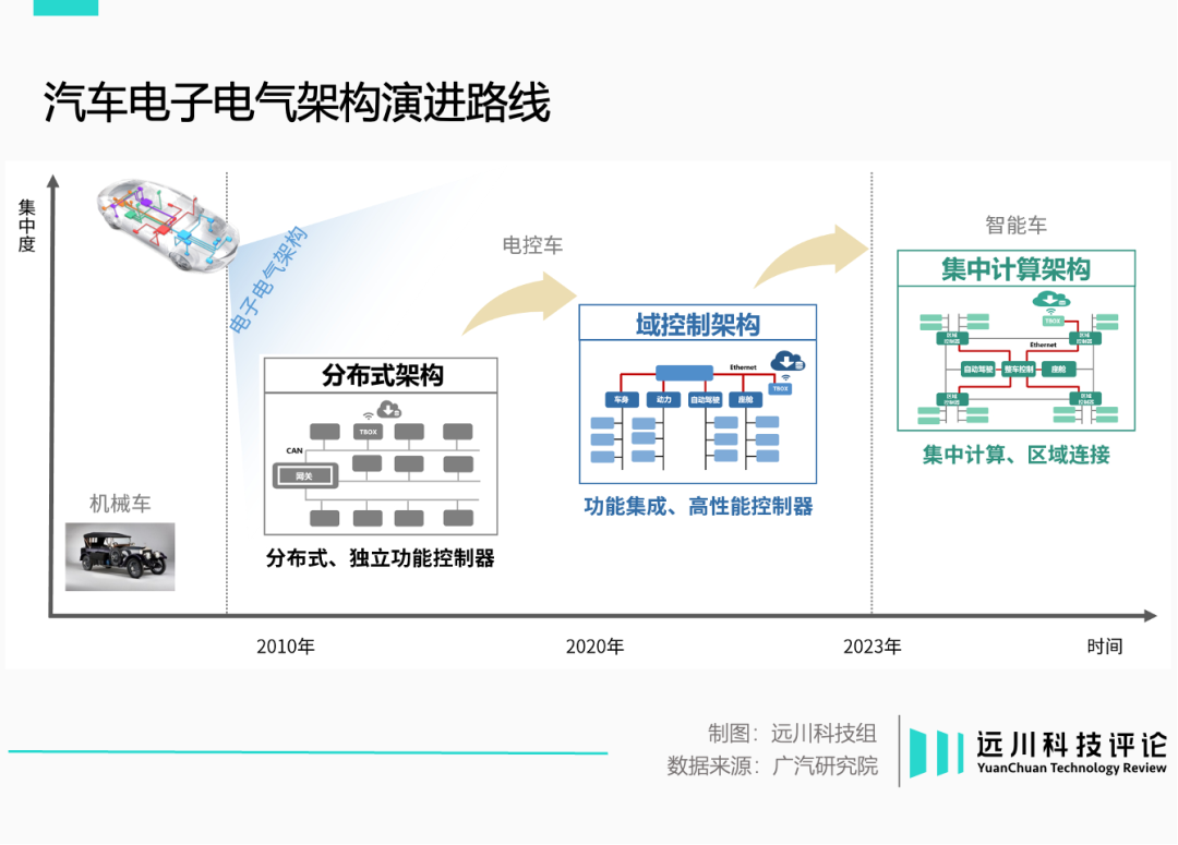 专用纯电平台是电动化转型的关键,与之相配的通常是更为集中的电子电气架构。EEA好比神经系统,负责连接车身各处的软硬件和通信网络。一个集中式的电子电气架构,是软件定义汽车的基础。