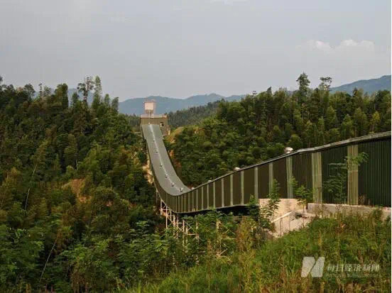 枧下窝矿区附近的矿石传送带 图片来源:每经记者 孔泽思 摄