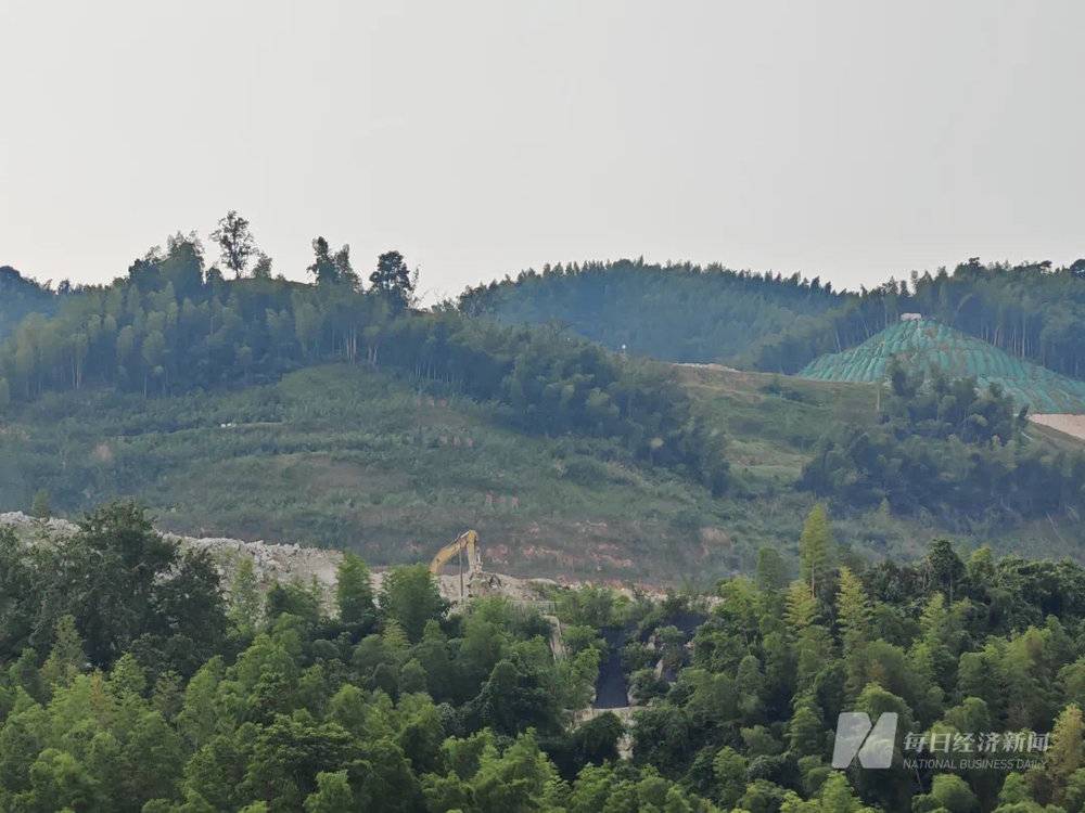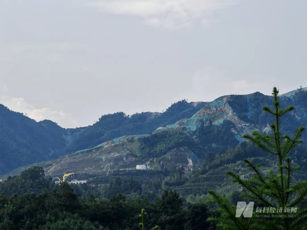 8月12日,《每日经济新闻》记者来到枧下窝矿区附近,只见不少山体都以“绿布”覆盖。整个下午,记者仅见到一台挖掘机在作业,矿区显得异常安静,进入矿区的双车道路面干净整洁。