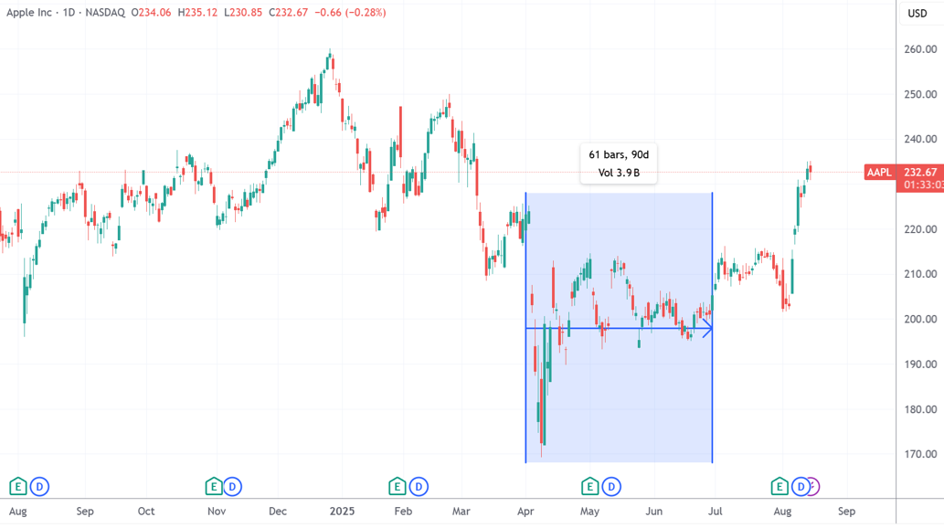 段永平的第一大持仓自然是苹果公司。一改过去连续四个季度减持苹果的操作,H&H二季度增持89万股。在4月初“对等关税”的冲击下,苹果股价一度跌到近两年低点。而在上周库克前往白宫赠送黄金纪念品后,苹果股价短短两周内上涨近15%,完全修复二季度的跌幅。