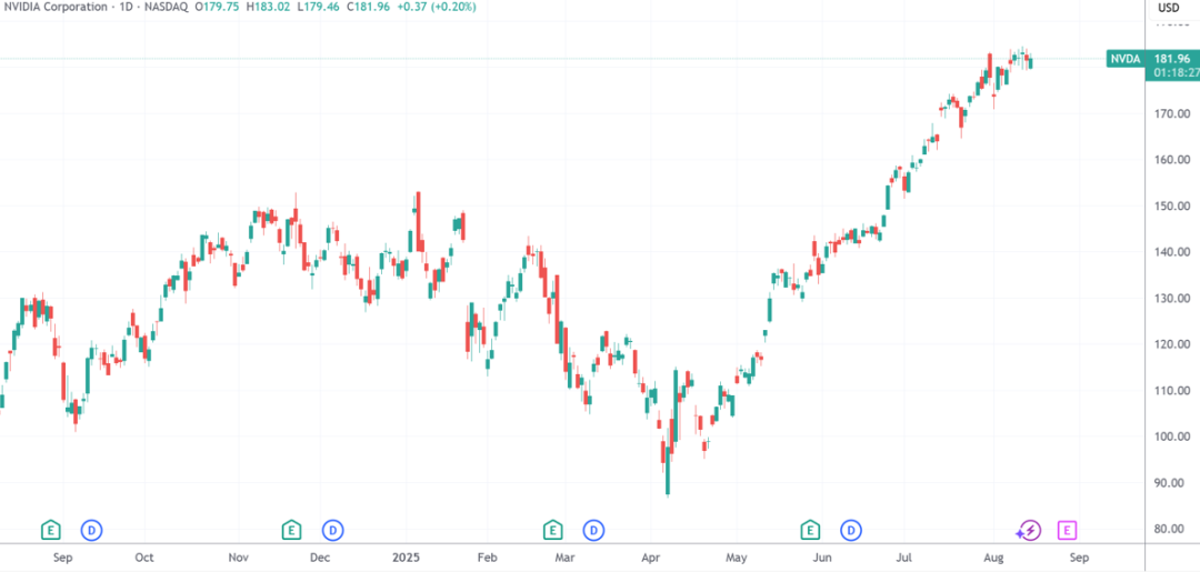 值得一提的是,英伟达年初的调整从1月底DeepSeek发布R1模型之后开始,一直到4月初关税冲击才见底。在之后4个月的持续拉升中,AI巨头已经实现翻倍涨幅,同时坐稳全球市值最大上市公司的宝座。