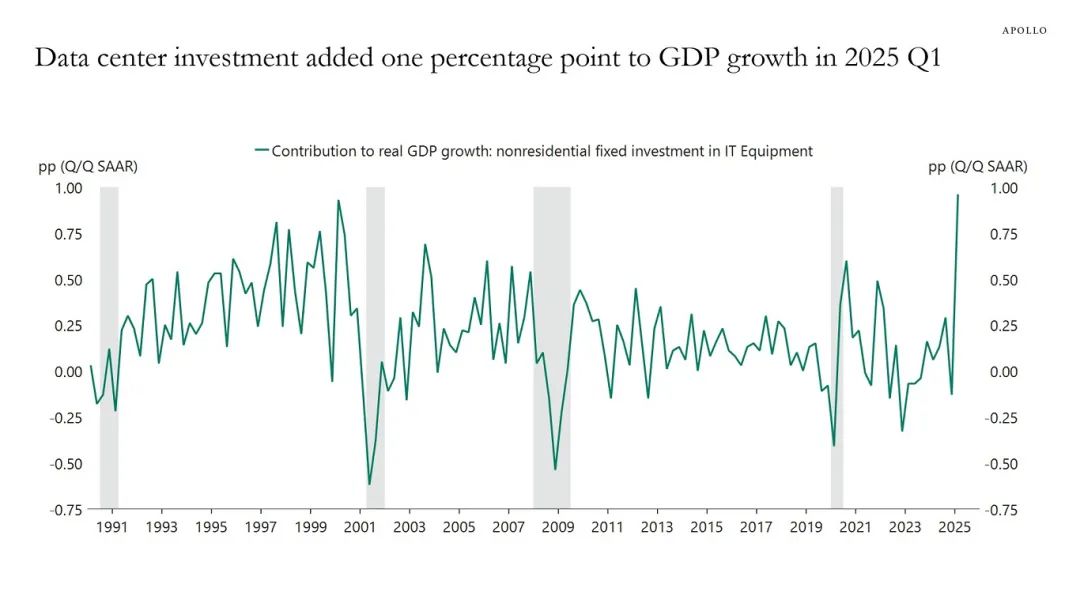 有证据吗?看美国:今年第一季度,数据中心投资对美国 GDP 的贡献约为1%,掐指一算,这可是接近当年 GDP 增量的一半(图 3)。