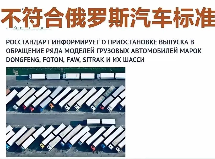 这还不够,今年2月,俄罗斯技术法规和计量局以“安全缺陷”为由,对部分中国卡车暂停型号批准,制定召回计划并停止销售。