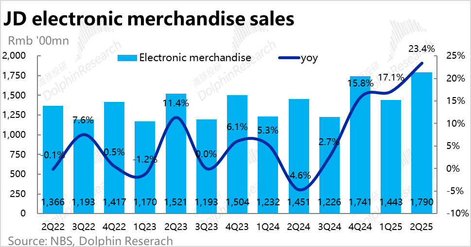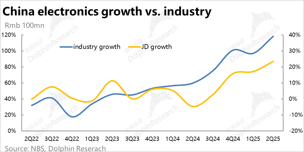 因此,本季京东通电产品的强劲增长,相对部分还是受益于国补带来的行业整体性利好。